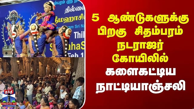 Maha Shivarathiri | Chidambaram | 5 ஆண்டுகளுக்கு பிறகு சிதம்பரம் நடராஜர் கோயிலில் களைகட்டிய நாட்டியாஞ்சலி #mahashivarathiri #chidambaram #natarajartemple #thanthitv நடராஜர் கோயிலில் 5 ஆண்டுகளுக்கு பிறகு நடந்த நாட்டியாஞ்சலி உலக பிரசித்தி பெற்ற சிதம்பரம் நடராஜர் கோயிலில், ஐந்தாண்டுகளுக்குப் பிறகு மகா சிவராத்திரியை முன்னிட்டு நாட்டியாஞ்சலி விழா சிறப்பாக நடைபெற்றது. இதில் தமிழகம், வெளிமாநிலங்கள் மட்டுமின்றி, மலேசியா, இலங்கை உள்ளிட்ட பல்வேறு நாடுகளில் இருந்தும் ஏராளமான பரதநாட்டிய கலைஞர்கள் கலந்து கொண்டனர்.