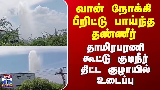 Nellai | வான் நோக்கி பீறிட்டு பாய்ந்த தண்ணீர்-தாமிரபரணி கூட்டு குடிநீர் திட்ட குழாயில் உடைப்பு