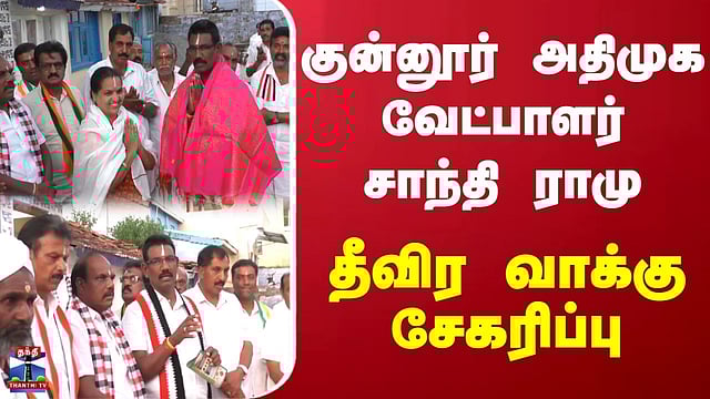 நீலகிரி மாவட்டம் கோத்தகிரி மலை கிராமங்களில் குன்னூர் சட்டமன்ற தொகுதி அதிமுக வேட்பாளர் சாந்தி ராமு 2வது நாளாக தீவிர வாக்கு சேகரிப்பில் ஈடுபட்டார். முன்னதாக அதிமுக வேட்பாளர் சாந்தி ராமுவிற்கு கிராம மக்கள் சால்வை அணிவித்து உற்சாக வரவேற்பு அளித்தனர்... பின்னர் பொதுமக்களிடையே பேசிய அவர், அதிமுக தேர்தல் அறிக்கையில் இடம்பெற்றுள்ள மாதந்தோறும் 2 ஆயிரம் ரூபாய், அரிசி அட்டைதாரர்களுக்கு இலவச பிரிட்ஜ், மற்றும் குடும்பத்திற்கு 10 ஆயிரம் ரூபாய் ஆகிய திட்டங்களை மக்களிடம் எடுத்துரைத்தார். மேலும், பெண்களுக்கு ஸ்கூட்டி வாங்க 25 ஆயிரம் ரூபாய் மானியம் வழங்கப்படும் என்றும், தான் வெற்றி பெற்றால் கிராமங்களுக்குத் தேவையான அனைத்து அடிப்படை வசதிகளையும் முன்னின்று செய்து தருவேன் எனவும் அதிமுக வேட்பாளர் சாந்தி ராமு உறுதியளித்தார். இந்தப் பிரச்சாரத்தில் அதிமுக மற்றும் கூட்டணிக் கட்சிகளைச் சேர்ந்த ஏராளமான நிர்வாகிகள் கலந்துகொண்டனர்.