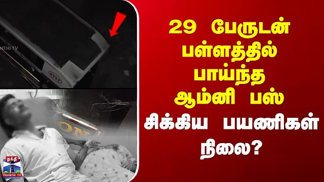 Hosur | Bus Accident | 29 பேருடன் பள்ளத்தில் பாய்ந்த ஆம்னி பஸ் - சிக்கிய பயணிகள் நிலை? #Hosur #bus #accident #thanthitv ஒசூர் அருகே பேரண்டப்பள்ளி பகுதியில் தேசிய நெடுஞ்சாலையில் சென்ற ஆம்னி பேருந்து, பிரேக் பிடிக்காமல் ஓட்டுநரின் கட்டுப்பாட்டை இழந்து சாலையோர நீரோடை பள்ளத்திற்குள் பாய்ந்தது. இந்த விபத்தில் 4 பேருக்குக் கால் முறிவு ஏற்பட்ட நிலையில், 29 பயணிகள் காயமடைந்தனர். தகவலறிந்து வந்த தீயணைப்புத் துறையினர் மற்றும் போலீசார், காயமடைந்தவர்களை மீட்டு ஓசூர் மற்றும் கிருஷ்ணகிரி அரசு மருத்துவமனைகளுக்கு அனுப்பி வைத்தனர். மேலும் விபத்து குறித்து போலீசார் தீவிர விசாரணை நடத்தி வருகின்றனர்.