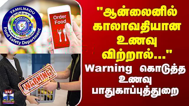 "ஆன்லைனில் காலாவதியான உணவு - கடும் நடவடிக்கை" ஆன்லைனில் காலாவதியான உணவுப்பொருட்களை விற்றால் கடும் நடவடிக்கை என உணவு பாதுகாப்புத்துறை எச்சரிக்கை