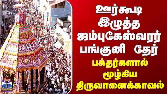 Panguni Chariot | ஊர்கூடி இழுத்த ஜம்புகேஸ்வரர் பங்குனி தேர்.. பக்தர்களால் மூழ்கிய திருவானைக்காவல்