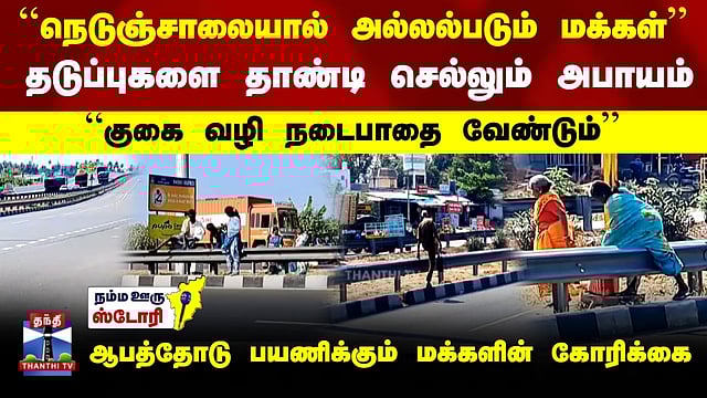 ``நெடுஞ்சாலையால் அல்லல்படும் மக்கள்’’ - தடுப்புகளை தாண்டி செல்லும் அபாயம் #highway #karur #subway #people #thanthitv நெடுஞ்சாலையால் அச்சம்.. குகை வழி பாதை கோரும் மக்கள்.. கரூர் அருகே அமைக்கப்பட்ட தேசிய நெடுஞ்சாலையால் அந்த பகுதியில் உள்ள பல கிராமங்களை சேர்ந்த மக்கள் பெரும் இன்னலை சந்தித்து வருகின்றனர். இதுகுறித்து பார்க்கலாம் இந்த தொகுப்பில்...