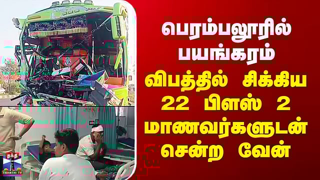 Perambalur | பெரம்பலூரில் கோரம் - விபத்தில் சிக்கிய 22 பிளஸ் 2 மாணவர்களுடன் சென்ற வேன்