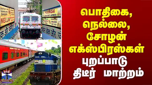 #pothigaiexpress #chozhanexpress செங்கோட்டை, சோழன் எக்ஸ்பிரஸ் புறப்பாடு மாற்றம் சென்னை எழும்பூர் செங்கோட்டை பொதிகை விரைவு ரயில் மார்ச் 17ஆம் தேதி முதல் ஏப்ரல் 6 தேதி வரை தாம்பரத்தில் இருந்தும், திருநெல்வேலி - எழும்பூர் விரைவு ரயில் மார்ச் 16ஆம் தேதி முதல் வரும் ஏப்ரல் 6 தேதி வரை தாம்பரம் வரை மட்டுமே இயக்கப்படும் என அறிவிக்கப்பட்டுள்ளது. இதேபோல் சென்னை எழும்பூரில் இருந்து திருச்சிக்கு இயக்கப்படும் சோழன் விரைவு ரயில் மார்ச் 16ஆம் தேதி முதல் ஏப்ரல் 5 ஆம் தேதி வரை 2 மணி நேரம் 15 நிமிடம் தாமதமாக அதாவது காலை10.15 மணிக்கு எழும்பூரில் இருந்து புறப்படும் என தெற்கு ரயில்வே அறிவித்துள்ளது.