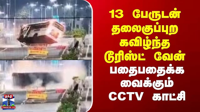 Puducherry | 13 பேருடன் தலைகுப்புற கவிழ்ந்த டூரிஸ்ட் வேன் - பதைபதைக்க வைக்கும் CCTV காட்சி புதுச்சேரி திருவாண்டார் கோவில் அருகே சுற்றுலா வேன் கட்டுப்பாட்டை இழந்து தலைகுப்புற கவிழ்ந்ததில், வேனில் இருந்த சிறுவர்கள் உட்பட 13 பேர் காயம் அடைந்த சிசிடிவி காட்சிகள் வெளியாகி அதிர்ச்சியை ஏற்படுத்தியுள்ளது...