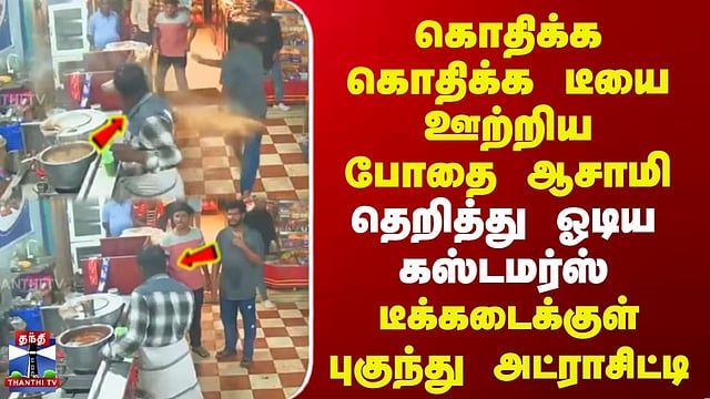 Pudukkottai Incident | கொதிக்க கொதிக்க டீயை ஊற்றிய போதை ஆசாமி | தெறித்து ஓடிய கஸ்டமர்ஸ் | டீக்கடைக்குள் புகுந்து அட்ராசிட்டி | வாடிக்கையாளர்கள் மீது கொதிக்கும் டீ-யை ஊற்றிய போதை ஆசாமி டீக்கடைக்குள் புகுந்து ரகளையில் ஈடுபட்ட போதை ஆசாமி மீது போலீசில் புகார் புதுக்கோட்டை மாவட்டம் அறந்தாங்கி அருகே டீக்டைக்குள் புகுந்த போதை ஆசாமி கொதிக்கும் டீயை கடைக்குள் நின்றவர்கள் மீது ஊற்றிய சம்பவம் பரபரப்பை ஏற்படுத்தியது... அறந்தாங்கி அருகே கிழக்கு கடற்கரை சாலையில் உள்ள கட்டுமாவடி கடைவீதியில் பேக்கரியுடன் கூடிய டீக்கடை செயல்பட்டு வருகிறது. இந்நிலையில் டீக்கடைக்குள் புகுந்த அதே பகுதியை சேர்ந்த ஆரிப்கான் என்ற போதை ஆசாமி, சட்டியில் கொதித்துக் கொண்டிருந்த டீ-யை கடைக்குள் நின்றவர்கள் மீது எடுத்து ஊற்றியதால் வாடிக்கையாளர்கள் செய்வதரியாது ஓட்டம் பிடித்தனர். இச்சம்பவம் குறித்து கடையின் உரிமையாளர் மணமேல்குடி காவல் நிலையத்தில் அளித்த புகார் அளித்துள்ள நிலையில் விசாரித்து வருகின்றனர்...