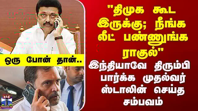 மக்களவை எதிர்க்கட்சித் தலைவர் ராகுல் காந்தியுடன் தமிழ்நாடு முதலமைச்சர் மு.க.ஸ்டாலின் தொலைபேசியில் பேச்சு தொகுதி மறுவரையறை மசோதவிற்கு எதிரான போராட்டத்தை ராகுல் வழிநடத்த வேண்டும் சட்ட மசோதாவிற்கு எதிர்ப்பு தெரிவிக்கும் வகையில் திமுக எம்பிக்கள் செயல்படுவார்கள் என ராகுலிடம் மு.க.ஸ்டாலின் பேசியுள்ளதாக தகவல்