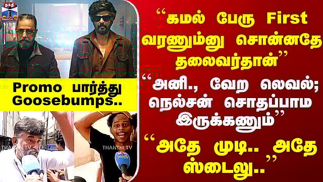 Rajini Kamal ``கமல் பேரு First வரணும்னு சொன்னதே தலைவர்தான்’’ - Promo பார்த்து ரசிகர்கள் Goosebumps நெல்சன் இயக்கத்தில் நடிகர்கள் ரஜினி மற்றும் கமல் இணைந்து நடிக்கும் படத்தின் ப்ரோமோ வெளியாகி பட்டையை கிளப்பும் பரோமோ வீடியோ குறித்து ரசிகர்கள் தெரிவித்ததை காணலாம்...