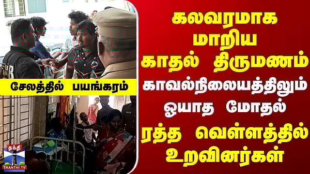 கலவரத்தில் முடிந்த காதல் திருமணம் - மாப்பிள்ளை உள்பட 4 பேர் கைது சேலம் மாவட்டம் ஓமலூர் அருகே கருப்பனம்பட்டியில் காதல் திருமணம் செய்ததால் 2 குடும்பங்களுக்கு இடையே கடும் மோதல் ஏற்பட்டது. மனோஜ் என்பவர் அதேபகுதியை சேர்ந்த இளந்தென்றல் என்ற பெண்ணை காதலித்து திருமணம் செய்து கொண்டார்... இதற்கு இரு குடும்பத்தாரும் எதிர்ப்பு தெரிவித்து, கத்தி, கம்பி, கிரிக்கெட் பேட்டைக் கொண்டு கடுமையாக தாக்கிக் கொண்டதில் 8 பேர் காயமடைந்து மருத்துவமனையில் அனுமதிக்கப்பட்டனர். இருதரப்பினரும் அளித்த புகாரின் பேரில் மாப்பிள்ளை மனோஜ், அவரது அண்ணன் மணிகண்டன், வழக்கறிஞர் தசரதன் உள்ளிட்ட 4 பேரை போலீஸார் கைது செய்து சிறையில் அடைத்துள்ளனர்.