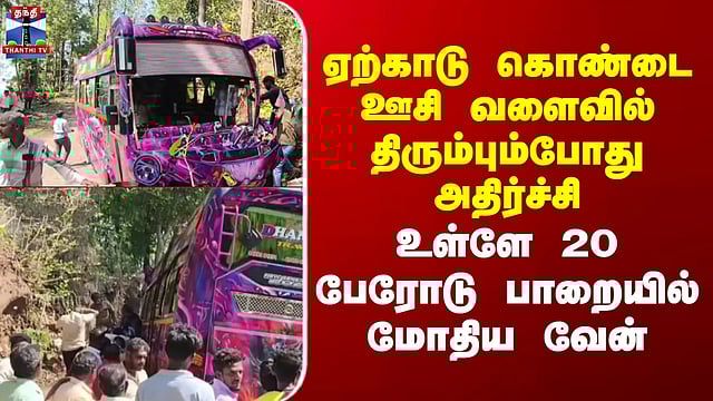 Salem | ஏற்காடு கொண்டை ஊசி வளைவில் திரும்பும்போது உள்ளே 20 பேரோடு பாறையில் மோதிய வேன்