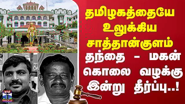 சாத்தான்குளம் தந்தை - மகன் கொலை வழக்கு - இன்று தீர்ப்பு சாத்தான்குளம் தந்தை–மகன் கொலை வழக்கில் மதுரை மாவட்ட முதலாவது கூடுதல் நீதிமன்றம் இன்று தீர்ப்பு வழங்கவுள்ளது.