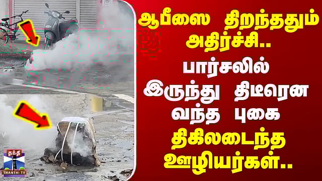 #Karur | #Courier | #Smoke | #ThanthiTV Karur | ஆபீஸை திறந்ததும் அதிர்ச்சி.. பார்சலில் இருந்து திடீரென வந்த புகை - திகிலடைந்த ஊழியர்கள்.. கரூரில் உள்ள தனியார் கொரியார் நிறுவனத்தின் பார்சல் ஒன்றில் இருந்து திடீரென கிளம்பிய புகையால் ஊழியர்கள் அதிர்ச்சி அடைந்தனர்...
