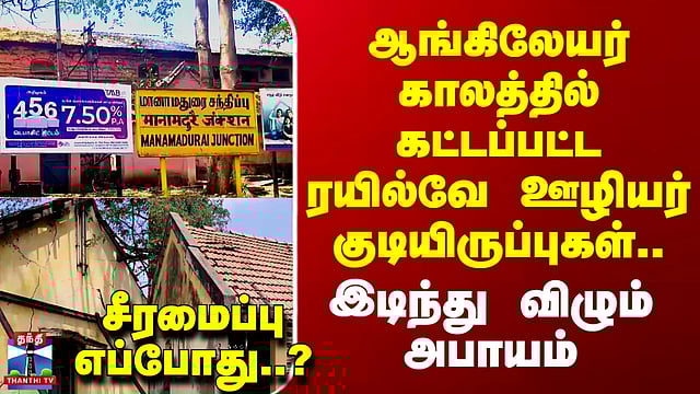 Sivagangai | ஆங்கிலேயர் காலத்தில் கட்டப்பட்ட ரயில்வே ஊழியர் குடியிருப்புகள்.. இடிந்து விழும் அபாயம் - சீரமைப்பு எப்போது..? சிவகங்கை மாவட்டம் மானாமதுரை ரயில்வே ஜங்ஷன் பகுதியில் ஆங்கிலேயர் காலத்தில் கட்டப்பட்ட ரயில்வே ஊழியர் குடியிருப்புகள் பராமரிப்பு இன்றி பாழடைந்து, தற்போது வெறும் 20 குடும்பங்கள் மட்டுமே வசிக்கும் நிலைக்கு தள்ளப்பட்டுள்ளன.