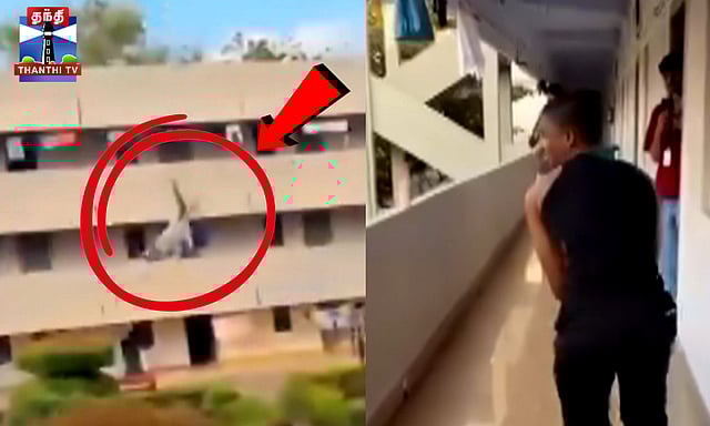 கோவை தனியார் பல்கலைக்கழக விடுதி மாடியில் இருந்து பூனையை, மாணவர் ஒருவர் கீழே தூக்கி வீசும் வீடியோ சமூக வலைதளத்தில் வெளியாகி அதிர்ச்சியை ஏற்படுத்தியுள்ளது. மனிதாபிமானமற்ற இந்தச் செயலுக்கு கடும் கண்டனம் தெரிவித்துள்ள விலங்கு நல ஆர்வலர்கள், சம்பந்தப்பட்ட மாணவர் மீது நடவடிக்கை எடுக்க வேண்டும் என கோரிக்கை விடுத்துள்ளனர்.