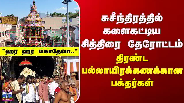 சுசீந்திரத்தில் சித்திரை தேரோட்டம் கோலாகலம் கன்னியாகுமரி மாவட்டம் சுசீந்திரம் தாணுமாலயசாமி கோவில் சித்திரை திருவிழாவின் முக்கிய நிகழ்வான தேரோட்டம் வெகுவிமரிசையாக நடைபெற்றது. கன்னியாகுமரி தொகுதி நாடாளுமன்ற உறுப்பினர் விஜய் வசந்த் தேரை வடம் பிடித்து இழுத்து தேரோட்டத்தை துவக்கி வைத்தார். கடும் வெயிலையும் பொருட்படுத்தாமல், ஏராளமான பக்தர்கள் ஹர ஹர மகாதேவா முழக்கத்துடன் தேரை வடம் பிடித்து இழுத்துச் சென்றனர். குறிப்பாக, இந்த விழாவில் பங்கேற்றால் குழந்தை பாக்கியம் மற்றும் மகிழ்ச்சியான மணவாழ்க்கை அமையும் என்ற நம்பிக்கையில் ஏராளமான புதுமணத் தம்பதிகள் சாமி தரிசனம் செய்தனர்.