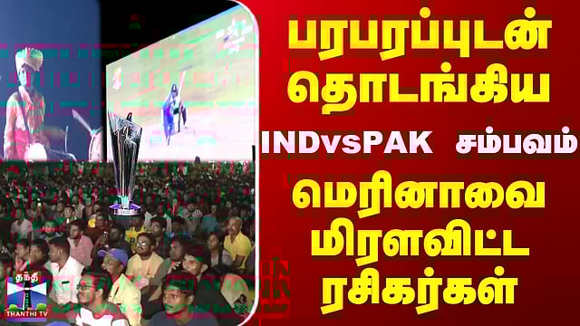 T20 உலக கோப்பை போட்டியில் இந்தியா பாகிஸ்தான் அணிகள் மோதுகின்ற நிலையில் சென்னை மெரினா கடற்கரையில் இரண்டு இடங்களில் சென்னை மாநகராட்சி சார்பில் நேரலை செய்யப்பட்டுவருகிறது... ரசிகர்கள் ஆர்வத்துடன் கண்டுகளித்துவருகின்றனர்... கூடுதல் தகவல்களை செய்தியாளர் மணிகண்டன் வழங்கிட கேட்கலாம்....