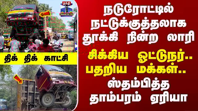 Tambaram | Lorry | நடுரோட்டில் நட்டுக்குத்தலாக நின்ற லாரி - திக் திக் காட்சி செங்கல்பட்டு மாவட்டம் தாம்பரம் அருகே வேகத்தடையில் அதிவேகமாக ஏறியபோது லாரியின் ஹட்ரோலிக் இயங்காமல் தூக்கியதால் பரபரப்பு ஏற்பட்டது...