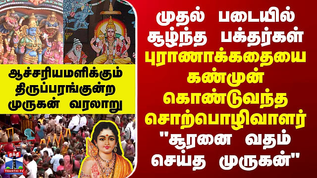 முதல் படையில் சூழ்ந்த பக்தர்கள்.. புராணாக்கதையை கண்முன் கொண்டுவந்த சொற்பொழிவாளர்- ஆச்சரியமளிக்கும் திருப்பரங்குன்ற முருகன் வரலாறு.."சூரனை வதம் செய்த முருகன்"