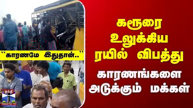 கரூரில் கல்லூரி பேருந்து மீது ரயில் மோதிய விபத்துக்கு, லெவல் கிராசிங்கில் கேட் அமைக்கப்படாததே காரணம் என பொதுமக்கள் குற்றம் சாட்டியுள்ளனர். இந்த விபத்துக்கு சரக்கு ரயிலை பயன்படுத்திய தனியார் நிறுவனமே முழுப்பொறுப்பேற்க வேண்டும் என்றும், தனியார் நிறுவனம் அந்த பகுதியில் உள்ள அனைத்து இடங்களிலும் உடனடியாக கிராசிங் கேட்டை அமைக்க வேண்டும் எனவும் பொதுமக்கள் வலியுறுத்தி உள்ளனர்...