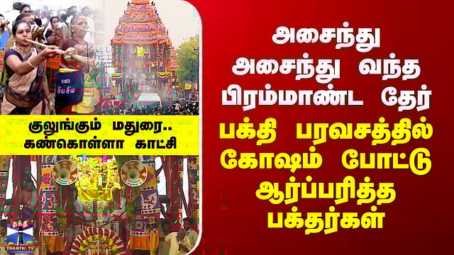 அசைந்து அசைந்து வந்த பிரம்மாண்ட தேர்.. பக்தி பரவசத்தில் கோஷம் போட்டு ஆர்ப்பரித்த பக்தர்கள் - கண்கொள்ளா காட்சி #chithiraithiruvizha #meenakshiammantemple #maduraimeenakshiamman #thanthitv