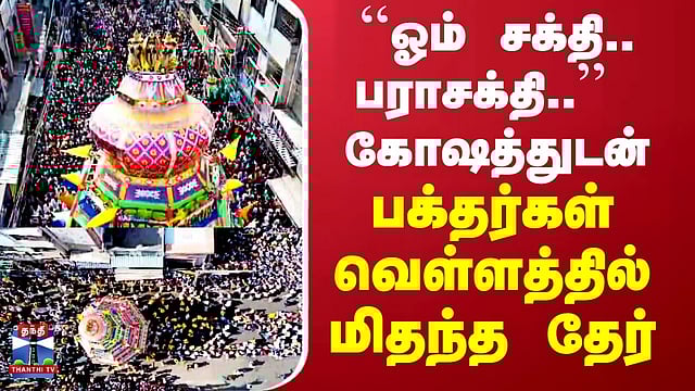 ``ஓம் சக்தி.. பராசக்தி..’’ கோஷத்துடன் பக்தர்கள் வெள்ளத்தில் மிதந்த தேர் #Coimbatore #RathaYatra #thanthitv கோவை கோனியம்மன் கோவில் தேர் திருவிழா கோலாகலமாக நடைபெற்றது கோவை கோனியம்மன் கோவில் தேர் திருவிழா கோலாகலமாக நடைபெற்றது கோவை கோனியம்மன் கோவில் தேர் திருவிழாவில் பல்லாயிரக்கணக்கான பக்தர்கள் ஓம் சக்தி பராசக்தி முழக்கத்துடன் தேரை இழுத்து வழிபட்டனர்.