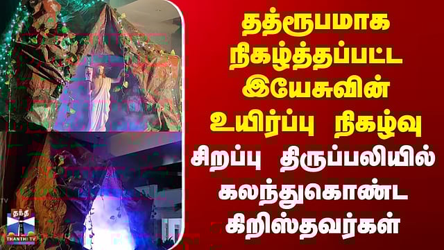 Easter | Jesus | தத்ரூபமாக நிகழ்த்தப்பட்ட இயேசுவின் உயிர்ப்பு நிகழ்வு | சிறப்பு திருப்பலியில் கலந்துகொண்ட கிறிஸ்தவர்கள் #easter #Jesus #nellai #karaikudi #thanthitv ஈஸ்டர் - மெய்சிலிர்க்க வைத்த இயேசு உயிர்ப்பு நிகழ்வு உலகெங்கும் உள்ள கிறிஸ்தவர்கள் 40 நாட்கள் நோன்பிருந்து கடைப்பிடித்த தவக்காலத்தின் நிறைவாக, இயேசு கிறிஸ்து உயிர்த்தெழுந்த ஈஸ்டர் திருநாள் நள்ளிரவு திருப்பலியுடன் விமர்சையாக கொண்டாடப்பட்டது. சிவகங்கை மாவட்டம் காரைக்குடி தூய சகாய அன்னை ஆலயத்தில் நடைபெற்ற பாஸ்கா திருவிழிப்பு வழிபாட்டில் ஏராளமானோர் பங்கேற்றனர். திருப்பலியின் போது இயேசுவின் உயிர்ப்பு நிகழ்வு தத்ரூபமாக நிகழ்த்திக் காட்டப்பட்டது.
