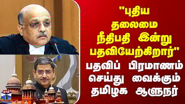 "புதிய தலைமை நீதிபதி இன்று பதவியேற்கிறார்" - பதவிப் பிரமாணம் செய்து வைக்கும் தமிழக ஆளுநர் #madrashighcourt #judge #chennai #rnravi #tamilnadu #thanthitv புதிய தலைமை நீதிபதி இன்று பதவியேற்கிறார் "சென்னை உயர்நீதிமன்றத்தின் 55-வது தலைமை நீதிபதியாக, நீதிபதி சுஷ்ருத் அரவிந்த் தர்மாதிகாரி இன்று (வெள்ளிக்கிழமை) பதவியேற்றுக் கொள்கிறார். எம்.எம். ஸ்ரீவஸ்தவா பணி ஓய்வு பெற்றதைத் தொடர்ந்து, கேரள உயர்நீதிமன்ற நீதிபதியாக இருந்த இவரைப் புதிய தலைமை நீதிபதியாக நியமித்துக் குடியரசுத் தலைவர் உத்தரவிட்டுள்ளார்.