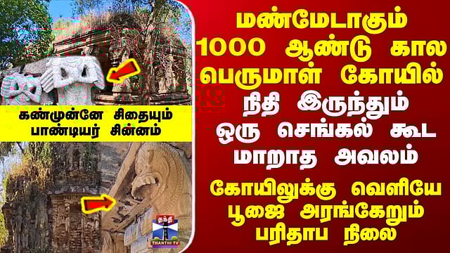 Namma Ooru Story | Theni | Temple | கண்முன்னே சிதையும் பாண்டியர் சின்னம் - மண்மேடாகும் 1000 ஆண்டு கால பெருமாள் கோயில் அலட்சியத்தால் சிதைகிறதா அகோபிலராய பெருமாள் கோயில்? தேனி மாவட்டம் ஆண்டிப்பட்டி அருகே உள்ள அகோபிலராய பெருமாள் கோயிலுக்கு நிதி ஒதுக்கப்பட்டபோதும் புனரமைப்பு பணிகள் தொடங்காமல் சிதிலமடைந்து வருவதாக குற்றச்சாட்டு முன்வைக்கப்பட்டுள்ளது.