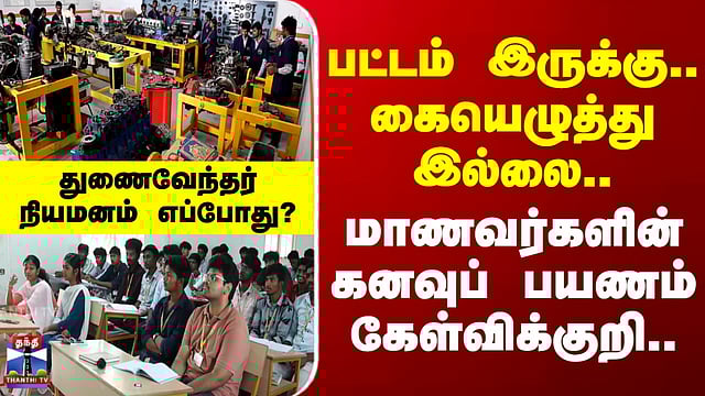 #University | #UniversityIssue | #Graduation | #ThanthiTV University Issue | பட்டம் இருக்கு.. கையெழுத்து இல்லை.. மாணவர்களின் கனவுப் பயணம் கேள்விக்குறி - துணைவேந்தர் நியமனம் எப்போது? தமிழகத்தின் 20 அரசு பல்கலைக்கழகங்களில் 15 இடங்களில் துணைவேந்தர் காலியிடம் நீடிக்கும் சூழலில் தாங்கள் பெறும் பட்டங்களில் பல்வேறு சிக்கல்கள் எழுவதாக மாணவர்கள் கவலை தெரிவிக்கின்றனர்...