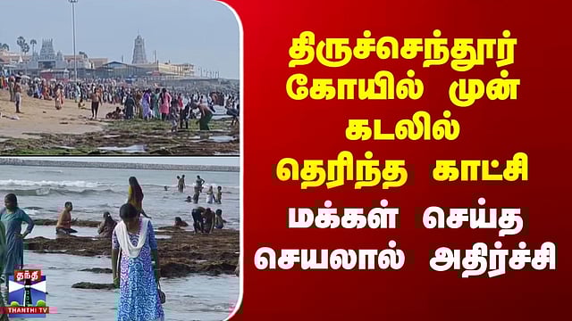திருச்செந்தூர் சுப்பிரமணியசுவாமி கோயில் முன்பு, கடல் சுமார் 75 அடி தூரம் வரை உள்வாங்கி காணப்பட்டது. நாழிக்கிணறு முதல் செல்வ தீர்த்தம் வரை சுமார் 500 மீட்டர் நீளத்திற்கு பாசிப்படிந்த பாறைகள் தென்பட்டன. இதனை பார்ப்பதற்காக வந்த பக்தர்கள், ஆபத்தை உணராமல் பாறைகளின் மீது நின்று செல்பி எடுத்தும், சிலர் அங்கு நீராடியும் மகிழ்ந்தனர்.
