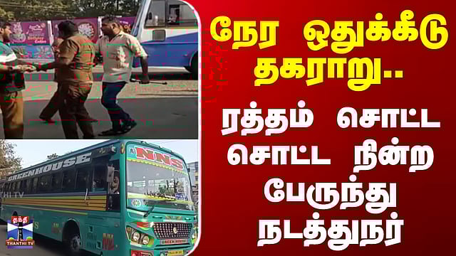 நேர ஒதுக்கீடு தகராறு.. ரத்தம் சொட்ட சொட்ட நின்ற பேருந்து நடத்துநர் #sivagangai #karaikudi #bus #attack #crime #thanthitv நேர ஒதுக்கீடு தகராறு-இரும்பு கம்பியால் தாக்கப்பட்ட பேருந்து நடத்துநர் சிவகங்கை மாவட்டம் காரைக்குடி புதிய பேருந்து நிலையத்தில் தனியார் பேருந்துகளின் நேர ஒதுக்கீடு பிரச்சனையில், நடத்துநர் தாக்கப்பட்ட சம்பவம் பரபரப்பை ஏற்படுத்தியது.