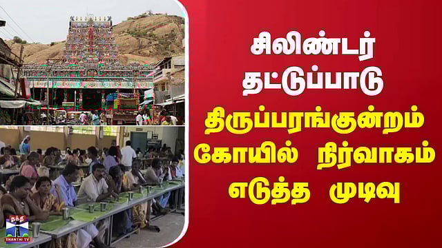 Tiruparankundram | சிலிண்டர் தட்டுப்பாடு - திருப்பரங்குன்றம் கோயில் நிர்வாகம் எடுத்த முடிவு சிலிண்டர் தட்டுப்பாட்டால் விறகு அடுப்பில் அன்னதானம் எரிபொருள் தட்டுப்பாடு காரணமாக, மதுரை திருப்பரங்குன்றம் முருகன் கோவிலில் விறகு அடுப்பில் அன்னதானம் தயாரிக்கப்பட்டு வருகிறது. வளைகுடா நாடுகளிலிருந்து எரிபொருள் விநியோகம் பாதிக்கப்பட்டதால், தமிழகத்தில் வணிகப் பயன்பாட்டு சிலிண்டர்களுக்குக் கடும் தட்டுப்பாடு நிலவுகிறது. இதனால், திருப்பரங்குன்றம் மற்றும் அதன் உபகோவில்களில் வழங்கப்படும் அன்னதானத் திட்டம் தடைபடாமல் இருக்க, கோவில் நிர்வாகம் தற்காலிகமாக விறகு அடுப்புகளை அமைத்துள்ளது. சிலிண்டர் விநியோகம் சீராகும் வரை இதே முறையில் சமையல் பணிகள் தொடரும் எனத் தெரிவிக்கப்பட்டுள்ளது.