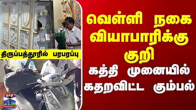 Tirupathur | Crime | Robbery | வெள்ளி நகை வியாபாரிக்கு குறி - கத்தி முனையில் கதறவிட்ட கும்பல் வாணியம்பாடியில் கத்தி முனையில் 38 கிலோ வெள்ளி பொருட்கள் கொள்ளையடித்துச் சென்ற நான்கு பேர் கைது செய்யப்பட்டுள்ளனர்.. கூடுதல் தகவல்களை செய்தியாளர் பிரபாகரன் வழங்கிட கேட்கலாம்... திருப்பத்தூர் மாவட்டம் வாணியம்பாடி பஜார் பகுதியில் கடந்த 17 ஆம் தேதி ஆற்காடு பகுதியைச் சேர்ந்த வெள்ளி நகை வியாபாரி தீபக் என்பவர் 100 கிலோ வெள்ளி பொருட்களை விற்பனை செய்வதற்காக எடுத்து வந்து விற்பனை செய்து மீதி இருந்த 38 கிலோ வெள்ளிப் பொருட்களை காரில் வைக்கும் போது இதனை நோட்டமிட்ட மர்ம நபர்கள் கத்தி முனையில் 6 பேர் கொண்ட கும்பல் கண்ணிமைக்கும் நேரத்தில் கொள்ளையடித்துச் சென்றனர். இது தொடர்பாக வாணியம்பாடி நகர போலீசார் வழக்கு பதிவு செய்து விசாரணை மேற்கொண்டு வந்த நிலையில் இன்று வாணியம்பாடி பகுதியைச் சேர்ந்த பாபு, நரசிம்மன், மணி, ஆகிய நான்கு பேரை காவல்துறையினர் கைது செய்து அவரிடமிருந்து 38 கிலோ வெள்ளி பொருட்கள் பறிமுதல் செய்துள்ளனர்..... மேலும் தலைமுறைவாக உள்ள சிலரை தேடி வருகின்றனர்....