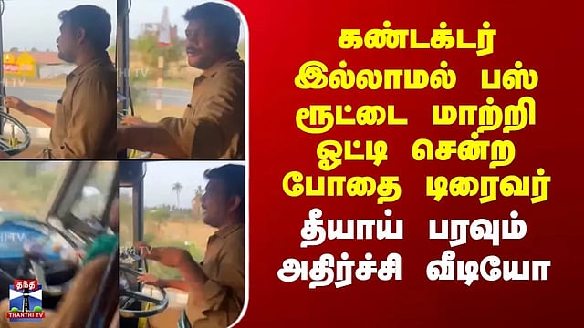 Tiruppur | கண்டக்டர் இல்லாமல் பஸ் ரூட்டை மாற்றி ஓட்டி சென்ற போதை டிரைவர் - அதிர்ச்சி வீடியோ