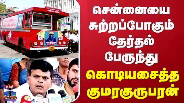 சென்னை மாவட்டத்தில் உள்ள 16 சட்டமன்றத் தொகுதிகளில், வாக்காளர்களுக்கு விழிப்புணர்வு ஏற்படுத்திடும் வகையில், தேர்தல் விழிப்புணர்வுப் பேருந்து மற்றும் வாகனங்களை சென்னை ரிப்பன் கட்டட வளாகத்தில் மாவட்ட தேர்தல் அலுவலர் குமரகுருபரன் கொடியசைத்துத் தொடங்கி வைத்து செய்தியாளர்களை சந்தித்து வருகிறார் அதன் நேரடிக் காட்சிகளை தற்போது காணலாம்.