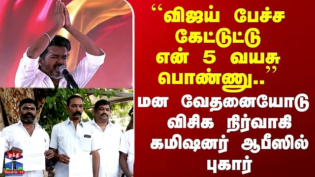 TVK Vijay Speech``விஜய் பேச்ச கேட்டுட்டு என் 5 வயசு பொண்ணு..’’ - மன வேதனையோடு விசிக நிர்வாகி புகார். குழந்தைகள் பெற்றோரிடம் அடம்பிடித்து தவெகவுக்கு வாக்களிக்க வேண்டும் என பேசியது குறித்து கோவை காவல் ஆணையரிடம் விசிக நிர்வாகி புகார் அளித்துள்ளனர்.