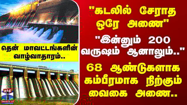#VaigaiDam | #Theni | #SouthTamilNadu | #Dam | #Madurai | #Dindigul | #ThanthiTV Vaigai Dam | "கடலிலேயே சேராத ஒரே அணை - இன்னும் 200 வருஷம் ஆனாலும்.." - 68 ஆண்டுகளாக கம்பீரமாக நிற்கும் வைகை அணை.. தென் மாவட்டங்களின் வாழ்வாதாரம் தேனி மாவட்டத்தின் அடையாளம்.. தென் மாவட்ட மக்களின் வாழ்வாதாரம்… பெருந்தலைவர் காமராஜரால் கட்டப்பட்ட வைகை அணை இன்று 68வது ஆண்டில் அடியெடுத்து வைக்கிறது.