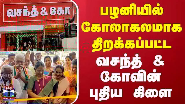 இந்தியாவின் முன்னணி வீட்டு உபயோகப் பொருட்கள் விற்பனை நிறுவனமான வசந்த் அன்ட் கோவின் புதிய கிளை, திண்டுக்கல் மாவட்டம் பழனியில் கோலாகலமாகத் திறக்கப்பட்டது. சிவகிரிபட்டி பகுதியில் அமைந்துள்ள இக்கிளையை, நிறுவனத்தின் முக்கியப் பிரமுகர்கள் மற்றும் ஊழியர்கள் கலந்து கொண்டு திறந்து வைத்தனர். இதனையொட்டி, ஏராளமான பொதுமக்கள் வருகை தந்து பல்வேறு சலுகை விலையில் பொருட்களை வாங்கிச் சென்றனர். பழனி வாழ் மக்களுக்காகப் பிரம்மாண்டமான முறையில் அமைக்கப்பட்டுள்ள இந்த புதிய கிளையில், ஃபிரிட்ஜ், வாஷிங் மெஷின், எல்.இ.டி தொலைக்காட்சிகள், கைபேசிகள் என அனைத்து வீட்டு உபயோகப் பொருட்களும் ஒரே கிளையில் விற்பனைக்கு வைக்கப்பட்டுள்ளன. திறப்பு விழாவை ஒட்டி, மதிப்புமிக்க காம்போ ஆஃபர்கள், சிறப்புப் பரிசுகள் மற்றும் எக்ஸ்சேஞ்ச் சலுகைகள் அறிவிக்கப்பட்டுள்ளன.