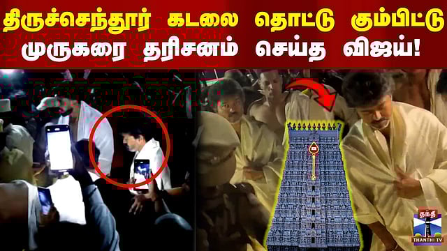 Vijay | திருச்செந்தூர் கடலை தொட்டு கும்பிட்டு முருகரை தரிசனம் செய்த விஜய்..!