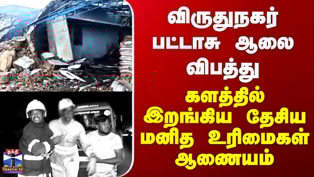விருதுநகர் பட்டாசு ஆலை விபத்து - தேசிய மனித உரிமைகள் ஆணையம் விசாரணை விருதுநகர் மாவட்டம் கட்டனார்பட்டியில் ஏற்பட்ட பட்டாசு ஆலை வெடி விபத்து தொடர்பாக தேசிய மனித உரிமைகள் ஆணையம் தாமாக முன்வந்து விசாரணை தொடங்கியுள்ளது. இந்த விபத்தில் 21 பேர் உயிரிழந்த நிலையில் 6 பேர் காயமடைந்துள்ளனர். சம்பவம் குறித்து ஊடக செய்திகள் அடிப்படையில் வழக்குப்பதிவு செய்த ஆணையம், காயமடைந்தவர்களின் நிலை, விசாரணை முன்னேற்றம் மற்றும் இழப்பீடு விவரங்கள் உள்ளிட்ட முழுமையான அறிக்கையை 2 வாரங்களுக்குள் தாக்கல் செய்ய தமிழ்நாடு தலைமைச் செயலர் மற்றும் விருதுநகர் காவல் அதிகாரிகளுக்கு உத்தரவிட்டுள்ளது.