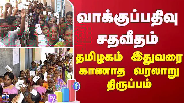 வாக்குப்பதிவு சதவீதம்.. தமிழகம் இதுவரை காணாத வரலாறு திருப்பம் #election2026 #tnelection2026 #assemblyelection #thanthitv தமிழக சட்டமன்றத் தேர்தலில் வரலாறு காணாத வாக்குப்பதிவு தமிழ்நாடு சட்டமன்றத் தேர்தலில் வரலாறு காணாத வாக்குப்பதிவு பதிவாகியுள்ளது... தமிழகத்தில் 234 தொகுதிகளுக்கும் நடைபெற்ற சட்டமன்றத் தேர்தலில், வரலாற்றிலேயே இதுவரை இல்லாத வகையில் 85.15% வாக்குகள் பதிவாகி புதிய சாதனை படைக்கப்பட்டுள்ளது. தமிழக சட்டமன்றத் தேர்தலுக்கான வாக்குப்பதிவு நேற்று காலை 7 மணிக்குத் தொடங்கி விறுவிறுப்பாக நடைபெற்றது. மாலை 6 மணி வரை நடைபெற்ற இந்தத் தேர்தலில், மாநிலம் முழுவதும் வாக்காளர்கள் நீண்ட வரிசையில் நின்று தங்களது ஜனநாயகக் கடமையை ஆற்றினர். கடந்த 2011-ஆம் ஆண்டு நடைபெற்ற சட்டமன்றத் தேர்தலில் பதிவான 77.80% வாக்குகளே இதுவரை அதிகபட்சமாக இருந்தது. ஆனால், தற்போது அந்தச் சாதனையை முறியடித்து, முதன்முறையாக 85.15% வாக்குகள் பதிவாகியுள்ளது. மொத்தமுள்ள 5.73 கோடி வாக்காளர்களில் 4 கோடியே 87 லட்சம் பேர் வாக்களித்துள்ளனர்... முதலமைச்சர் மு.க. ஸ்டாலின் போட்டியிடும் கொளத்தூர், எடப்பாடி பழனிசாமி போட்டியிடும் எடப்பாடி மற்றும் நடிகர் விஜய் போட்டியிடும் திருச்சி கிழக்கு உள்ளிட்ட நட்சத்திரத் தொகுதிகளில் வாக்குப்பதிவு 80 சதவீதத்திற்கும் அதிகமாகவே இருந்துள்ளது. வாக்குப்பதிவு நிறைவடைந்ததைத் தொடர்ந்து, மின்னணு வாக்குப்பதிவு இயந்திரங்கள் சீல் வைக்கப்பட்டு பலத்த பாதுகாப்புடன் வாக்கு எண்ணும் மையங்களுக்குக் கொண்டு செல்லப்பட்டன. தமிழகமே ஆவலுடன் எதிர்பார்க்கும் தேர்தல் முடிவுகள் வரும் மே 4 அன்று அறிவிக்கப்பட உள்ளன.