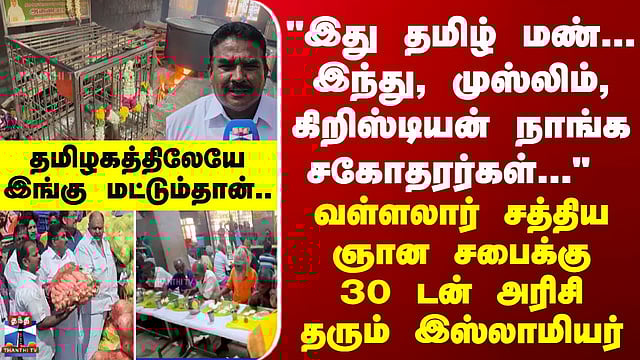#vadalurvallalar | #vallalar | #thaipoosam "நாங்க சகோதரர்கள்..." - வள்ளலார் சத்திய ஞான சபைக்கு 30 டன் அரிசி தரும் இஸ்லாமியர் வடலூரில் வள்ளலார் ஏற்றி வைத்த அணையா அடுப்பு ஏற்றி வைத்த அணையா அடுப்புக்கு மதங்களை கடந்து பலரும் சேவை செய்ய முன்வந்துள்ளனர்.. அணையா அடுப்பு என்ற ஒன்றே வடலூர் சத்திய ஞான சபையின் நோக்கம்.. இங்குள்ள தர்மசாலையில், இன்றும் தினமும் மூன்று வேளையும் அன்னதானம் நடைபெறுகிறது. தமிழகத்திலேயே மூன்று வேளையும் தொடர்ந்து அன்னதானம் நடைபெறும் ஒரே இடமும் இதுதான். இந்த நிலையில், தைப்பூச ஜோதி தரிசன விழாவை முன்னிட்டு, வடலூர் சத்திய ஞான சபை தர்மசாலைக்காக, மதம் கடந்த சேவையும் நடந்து வருகிறது... கடலூர் திருப்பாதிரிப்புலியூர் சிக்னல் அருகே காய்கறி கடை நடத்தி வரும் பக்கீரான் என்பவர், 30 டன் அளவிலான காய்கறிகள், அரிசி, மளிகைப் பொருட்கள் மற்றும் 7 ஆயிரம் குடிநீர் பாட்டில்களை தர்மசாலைக்கு வழங்கி இருக்கிறார். இஸ்லாமியரான பக்கீரான், கடந்த 25 ஆண்டுகளாக வடலூர் வள்ளலார் சத்திய ஞான சபைக்கு தொடர்ந்து காய்கறிகள் மற்றும் அரிசியை வழங்கி வருகிறார். 25 ஆண்டுகளுக்கு முன்பு மிகுந்த கஷ்டத்தில் இருந்ததாகவும். அப்போது தன்னுடைய நண்பர் ஒருவர் பரிந்துரை படி வள்ளலார் தர்மசாலைக்கு 5 மூட்டை அரிசி வழங்கியிருக்கிறார். அப்படி கொடுத்த சில நாட்களில் பக்கீரான் வாழ்வில் நல்லது நடக்கவே, அடுத்த ஆண்டு அரிசியின் அளவு 10 மூட்டையாகி இன்று 30 டன் அளவிற்கு வந்திருக்கிறதாம்.. மதம், இனம், மொழி என்பவற்றைத் தாண்டி, மனிதநேயமே உயர்ந்த தர்மம் என்பதை நிரூபிக்கும் இந்தச் செயல், வள்ளலார் போதித்த அருட்பெருஞ்ஜோதி வழியாக இன்றும் உயிர்ப்புடன் இருப்பதை உணர்த்துகிறது. பசியற்ற உலகம் என்ற வள்ளலாரின் கனவு, பக்கீரான் போன்ற மனிதநேய உள்ளங்களால் இன்றும் செயல்படுத்தப்பட்டு வருவது, சமூகத்திற்கு ஒரு உதாரணமும் கூட..