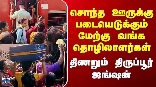 Tirupur | Train | சொந்த ஊருக்கு படையெடுக்கும் மேற்கு வங்க தொழிலாளர்கள் - திணறும் திருப்பூர் ஜங்ஷன் #Tirupur | #Train | #WestBengal | #Election2026 | #ThanthiTV வாக்களிக்க சொந்த ஊருக்கு புறப்படும் மேற்குவங்க தொழிலாளர்களால் திருப்பூர் ரயில் நிலையத்தில் கூட்டம் அலைமோதுகிறது. மேற்குவங்கத்தில் 2 கட்டமாக ஏப்ரல் 23 மற்றும் 29ம் தேதி சட்டமன்ற தேர்தலுக்கான வாக்குப்பதிவு நடைபெற உள்ளது. இதற்காக திருப்பூரில் உள்ள பனியன் கம்பெனிகளில் பணிபுரியும் ஆயிரக்கணக்கான மேற்கு வங்கத்தை சேர்ந்த தொழிலாளர்கள் வாக்களிக்க சொந்த ஊருக்கு புறப்பட்டு வருகின்றனர். இதனால், விவேக் எக்ஸ்பிரஸ் மற்றும் சென்னை நோக்கி செல்லும் ரயில்களில் கூட்டம் அலைமோதியது