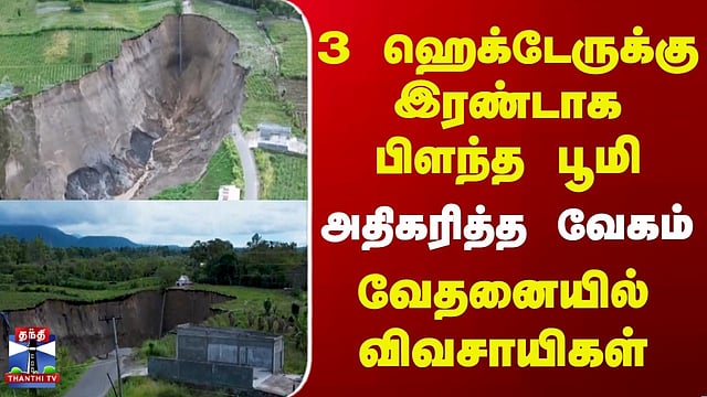 Indonesia | Sinkhole | 3 ஹெக்டேருக்கு இரண்டாக பிளந்த பூமி | அதிகரித்த வேகம் | வேதனையில் விவசாயிகள் #indonesia #sinkhole #landslide #thanthitv நிலச்சரிவால் ஏற்பட்ட பள்ளம் 3 ஹெக்டேர் அளவுக்கு சேதம் இந்தோனேசியாவின் மத்திய அசே மாவட்டத்தில் மிகப்பெரிய நிலச்சரிவால் ஏற்பட்ட பள்ளம் 3 ஹெக்டேர் அளவுக்கு விரிவடைந்துள்ளது. தங்கள் நிலம் முழுவதும் சேதமடைந்துள்ளதாகவும், அரசு இழப்பீடு வழங்க வேண்டும் என்றும் விவசாயிகள் கோரிக்கை விடுத்துள்ளனர்.. 2025 இறுதியில் ஏற்பட்ட பெருவெள்ளத்திற்குப் பிறகு இந்த பள்ளம் விரிவடையும் வேகம் அதிகரித்ததாக புவியியல் ஆய்வுகள் கூறுகின்றன...