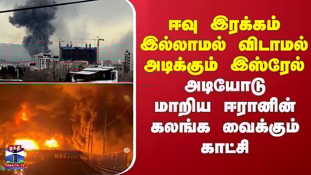 ஈரான் தலைநகரான தெஹ்ரான் மீது காலை முதலே இஸ்ரேல் ராணுவம் மிகப்பெரிய அளவில் தாக்குதல் நடத்தி வரும் நிலையில், எண்ணெய் சேமிப்பு நிலையங்கள் மற்றும் சுத்திகரிப்பு நிலையங்கள் மீது நடத்தப்பட்ட தாக்குதலால் தெஹ்ரான் நகரம் முழுவதும் கரும் புகை மூட்டம் சூழ்ந்து காட்சியளித்தது. ஈரானின் ஏவுகணை தளங்கள், கட்டுப்பாட்டு மையங்கள் மற்றும் எரிபொருள் கிடங்குகளை தாக்கியதாக தெரிவித்துள்ள இஸ்ரேல் ராணுவம், ஈரான் மீது தாக்குதலை இரக்கமின்றி தொடருவோம் என்று இஸ்ரேல் பிரதமர் பெஞ்சமின் நெதன்யாகு தெரிவித்துள்ளார்.