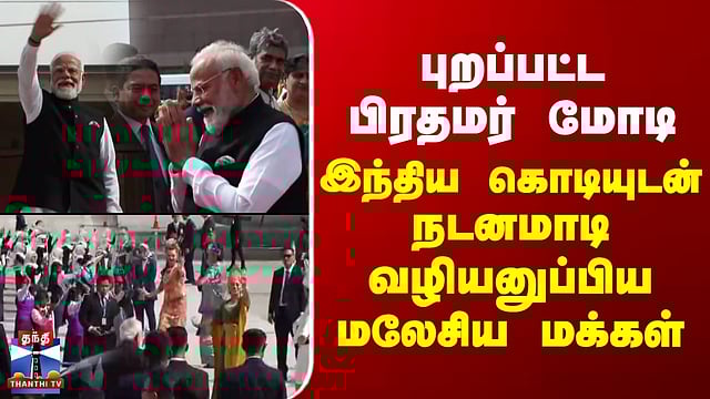 PM Modi | Malaysia | புறப்பட்ட பிரதமர் மோடி - இந்திய கொடியுடன் நடனமாடி வழியனுப்பிய மலேசிய மக்கள் மலேசிய பயணம் நிறைவு - இந்தியா புறப்பட்ட பிரதமர் மோடி 2 நாள் அரசு முறை பயணம் நிறைவடைந்து பிரதமர் மோடி மலேசியாவில் இருந்து இந்தியா புறப்பட்டார். இது தொடர்பான காட்சிகளை காண்போம்... 2 நாட்கள் அரசு முறை பயணமாக நேற்று மலேசியா சென்ற பிரதமர் மோடி, இன்று அந்நாட்டு அதிபருடன் இருதரப்பு பேச்சுவார்த்தையில் ஈடுபட்டார். தொடர்ந்து, இந்தியா மலேசியா இடையே பல்வேறு முக்கிய ஒப்பந்தங்கள் கையெழுத்திடப்பட்டது. தொடர்ந்து தனது மலேசிய பயணத்தை முடித்துக்கொண்டு பிரதமர் மோடி, கோலாலம்பூரில் இருந்து தனி விமானத்தில் டெல்லி புறப்பட்டார். அவரை மலேசிய உயர் அதிகாரிகள் வழியனுப்பி வைத்தனர். அந்தகாட்சிகளை பார்த்தோம்
