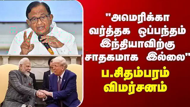 #america | #india | #pchidambaram "அமெரிக்கா வர்த்தக ஒப்பந்தம் இந்தியாவிற்கு சாதகமாக இல்லை" - ப.சிதம்பரம் விமர்சனம் இந்தியா - அமெரிக்கா இடையேயான வர்த்தக ஒப்பந்தம் குறித்த கூட்டறிக்கையை, முன்னாள் மத்திய நிதியமைச்சர் ப.சிதம்பரம் கடுமையாக விமர்சித்துள்ளார். இந்தியா - அமெரிக்கா இடையேயான வர்த்தக ஒப்பந்தம் தொடர்பான கூட்டறிக்கையை வெள்ளை மாளிகை வெளியிட்டுள்ளது. ALPHA IN இந்நிலையில், இந்தக் கூட்டறிக்கை மூலம் இரு நாடுகளுக்கும் இடையே, எந்தவொரு இருதரப்பு வர்த்தக ஒப்பந்தமும் எட்டப்படவில்லை என்பது தெளிவாகிறது எனவும், இந்த ஒப்பந்தம் இந்தியாவிற்குச் சாதகமாக இல்லை எனவும் ப.சிதம்பரம் சாடியுள்ளார். இது ஒரு இடைக்கால ஒப்பந்தம் கூட கிடையாது, மாறாக, இடைக்கால ஒப்பந்தத்திற்கான ஒரு கட்டமைப்பு மட்டுமே எனவும் ப.சிதம்பரம் சுட்டிக்காட்டியுள்ளார்.