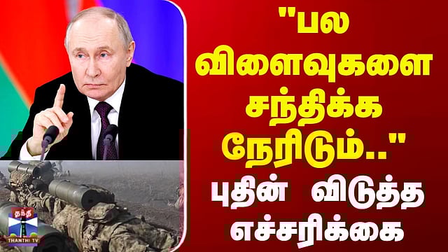 "பல விளைவுகளை சந்திக்க நேரிடும்.."- புதின் விடுத்த எச்சரிக்கை #putin #russia #russiaukrainewar #warzone #thanthitv "ரஷ்யாவை பலவீனப்படுத்த முயன்றால் விளைவுகளை சந்திக்க நேரிடும்" ரஷ்யாவை பலவீனப்படுத்த முயன்றால் அதற்கான விளைவுகளை எதிரிகள் சந்திக்க வேண்டியிருக்கும் என ரஷ்ய அதிபர் புதின் எச்சரிக்கை விடுத்துள்ளார்.