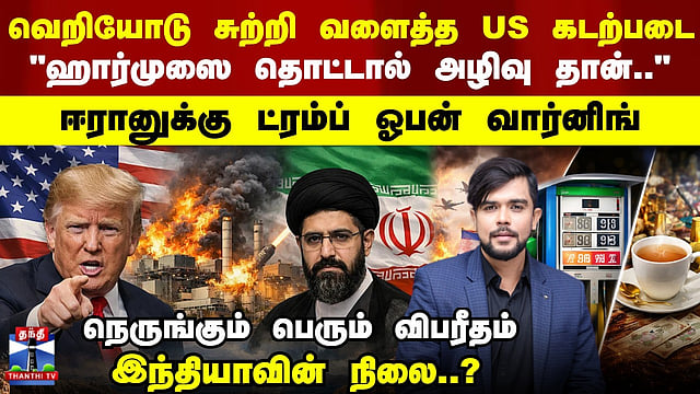 வெறியோடு சுற்றி வளைத்த US கடற்படை "ஹார்முஸை தொட்டால் அழிவு தான்.." ஈரானுக்கு ட்ரம்ப் ஓபன் வார்னிங் நெருங்கும் பெரும் விபரீதம் - இந்தியாவின் நிலை..? #trump #isrealattack #isrealiranwar #india #modi #iran #hormuz #thanthitv